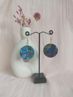 Boucles d’oreilles en origami (48 mm) réalisées à la main avec du papier washi japonais verni. Motifs rouges et dorés, rehaussés d'une feuille en acier ajourée pour une touche élégante. Montées sur crochets en acier inoxydable hypoallergénique. Ultra légères et uniques, idéales pour un style raffiné au quotidien.